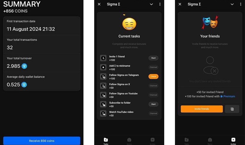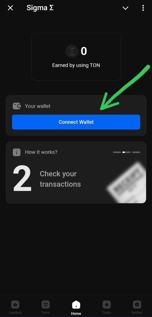 - تراکنشهای ولت شما: کافی است کیف پول TON را به ربات سیگما متصل کنید. ربات، حجم و تعداد تراکنشهایتان را بررسی میکند و بر اساس آن توکن SIGMA به شما تعلق میگیرد.