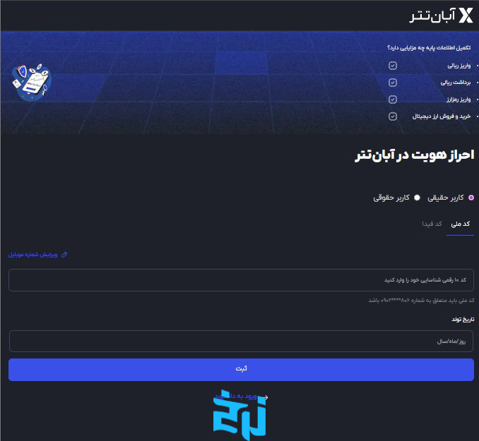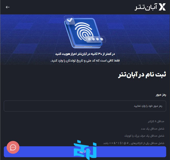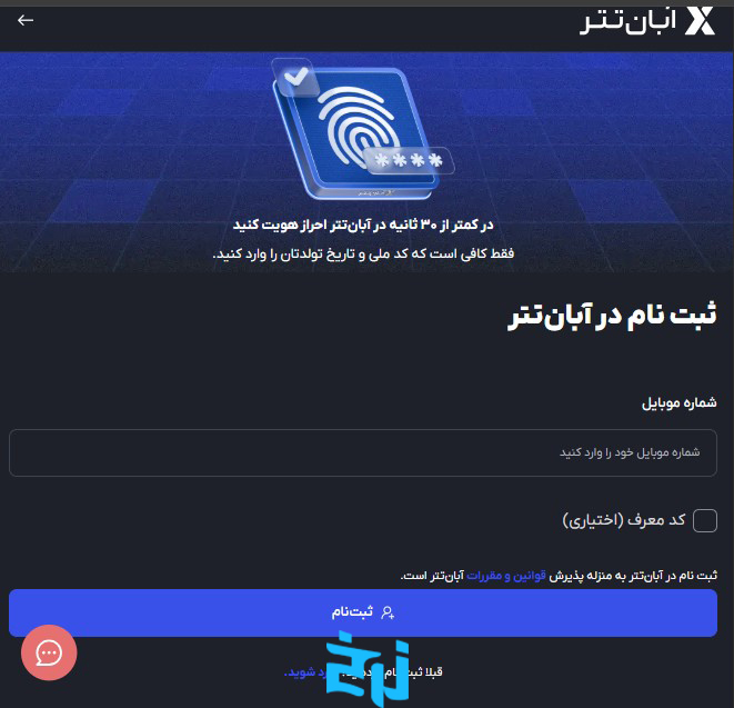 ثبتنام و احراز هویت در آبان تتر طوری طراحی شده که هر کاربری بتواند در چند مرحله ساده حساب خود را فعال کند و بدون دردسر وارد دنیای معامله رمزارزها شود. تمام مراحل بهصورت آنلاین انجام میشود و پس از تأیید اطلاعات، امکانات اصلی مثل واریز، برداشت و خرید و فروش برای شما فعال میشود. این فرایند سریع، واضح و قابل انجام با موبایل است و معمولاً در مدت کوتاهی نتیجه آن اعلام میشود. در ادامه به مراحل آن میپردازیم: