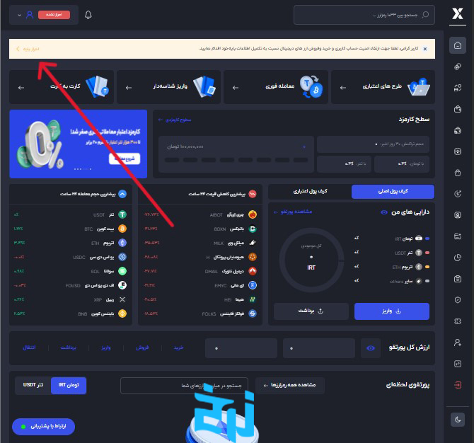 برای فعال شدن امکانات اصلی مثل خرید، فروش، واریز و برداشت ریالی: