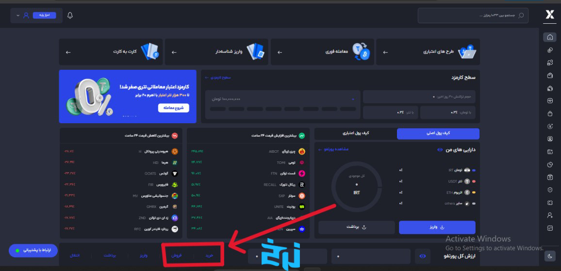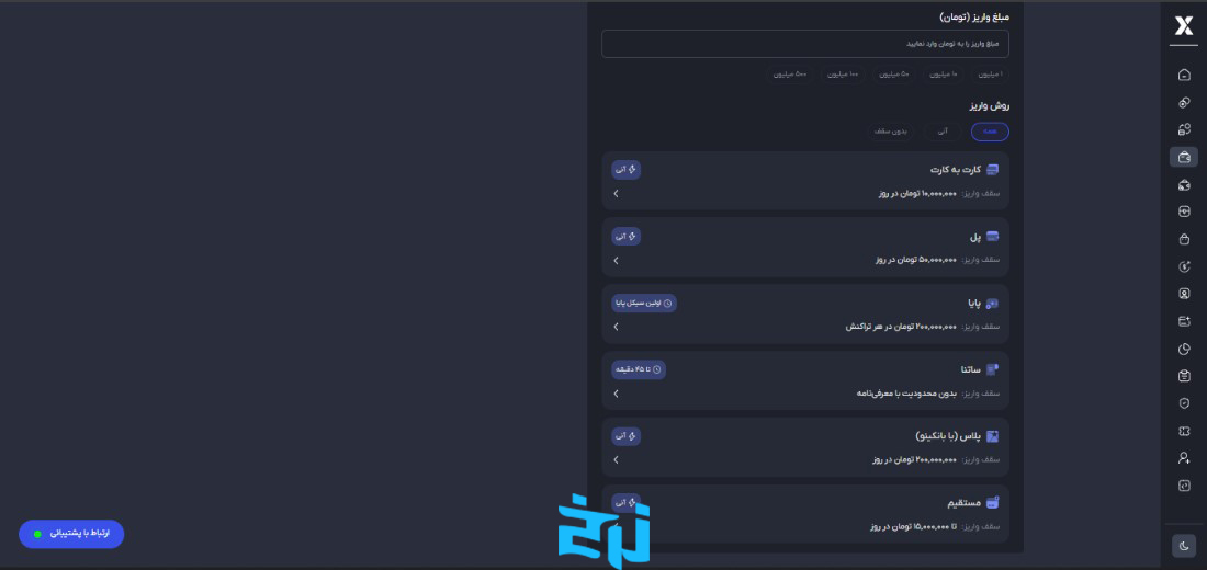در صورتی که قصد معامله با تومان دارید، موجودی ریالی خود را افزایش دهید. اگر با تتر یا سایر ارزها میخواهید معامله کنید، کیف پول ارزی خود را شارژ نمایید.
