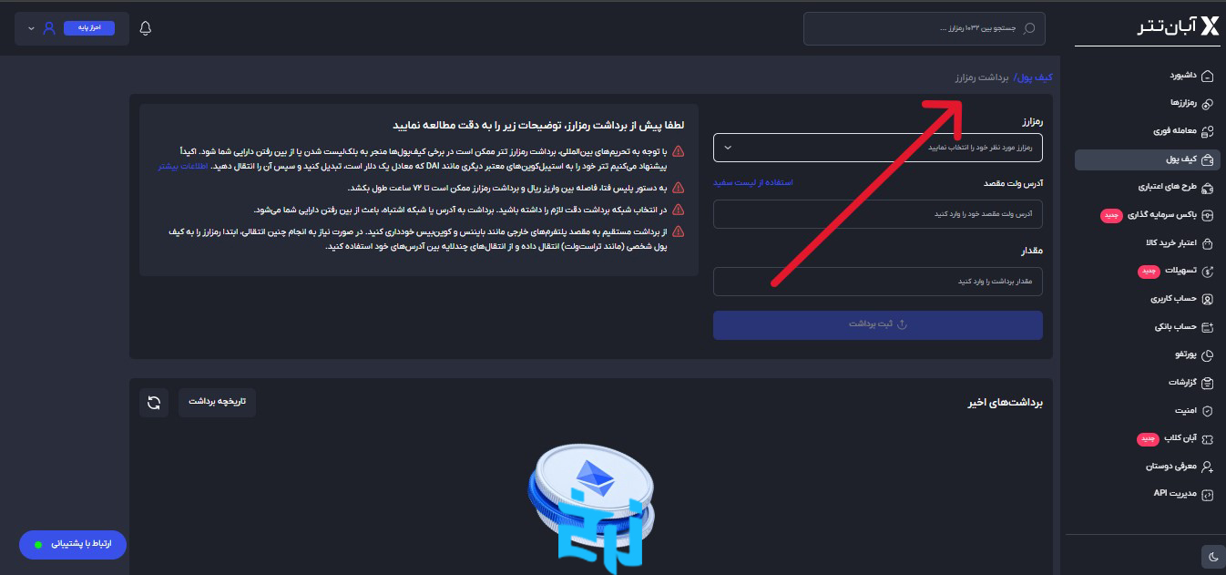 برای پیگیری وضعیت واریز و برداشت در آبان تتر، کافیه وارد حساب کاربری بشی و به بخش کیف پول مراجعه کنی. اونجا میتونی وضعیت درخواستها رو ببینی (در حال پردازش، تاییدشده یا ردشده). برای برداشت ریالی، زمان تسویه به سیکل بانکی بستگی داره. اگه تأخیر داشت، از طریق پشتیبانی آنلاین یا تلفن پیگیری کن.