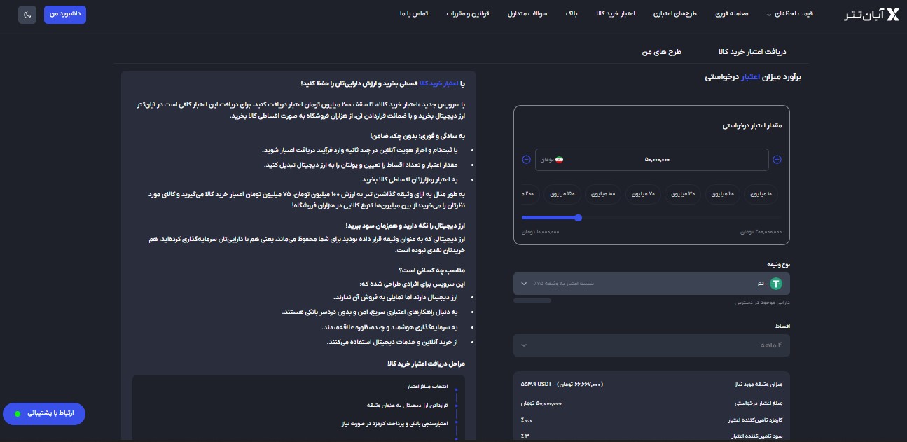 وام گیری با وثیقه گذاری ارزهایی مثل بیت کوین، اتریوم، پکسگلد و تترگلد، با بازپرداخت ۱ تا ۶ ماهه.