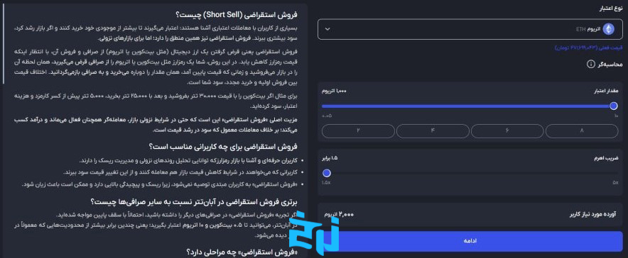 قابلیت گرفتن پوزیشن فروش برای بیت کوین و اتریوم با اهرم ۵x برای کسب سود از ریزش قیمت ها.