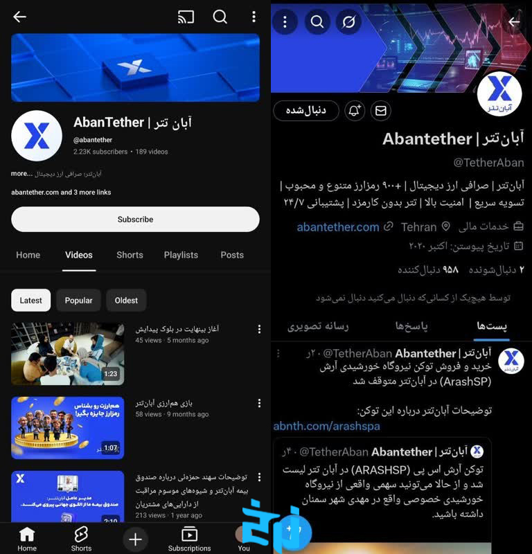 صرافی آبان تتر برای اطلاع رسانی، پشتیبانی سریع تر و تعامل با کاربران، در چند پلتفرم اجتماعی فعالیت دارد. کاربران میتوانند از طریق این شبکه ها به اخبار، آموزشها، اطلاعیه های مهم و حتی هشدارهای امنیتی دسترسی داشته باشند. حضور فعال آبان تتر در این فضاها باعث افزایش شفافیت و اعتماد کاربران به این پلتفرم شده است.