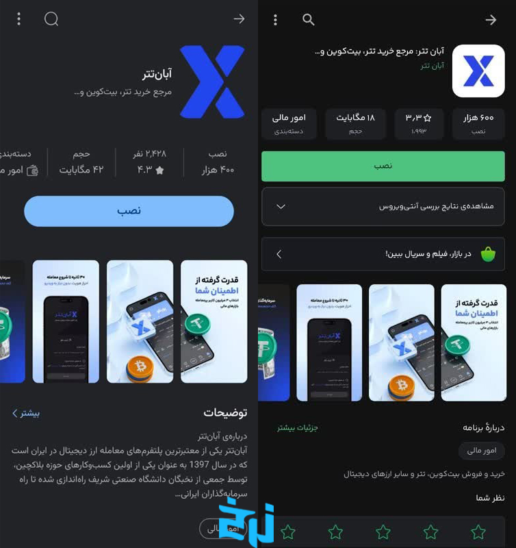 برای استفاده راحت تر و دسترسی سریع تر به خدمات آبان تتر، این اپلیکیشن برای موبایل عرضه شده است. شما میتوانید از طریق منابع معتبر و ایمن اپلیکیشن را دریافت کنید تا بدون نیاز به مرورگر، مستقیم وارد حساب کاربری تان شوید، معاملات را مدیریت کنید، واریز و برداشت انجام دهید.