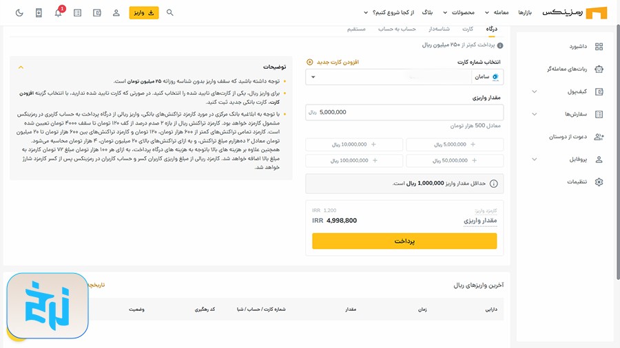 در قسمت کیف پول رمزینکس سه کانال اصلی برای شارژ کیف پول ریالی ارائه میدهد که هر یک محدودیتها و قوانین خاص خود را دارند.