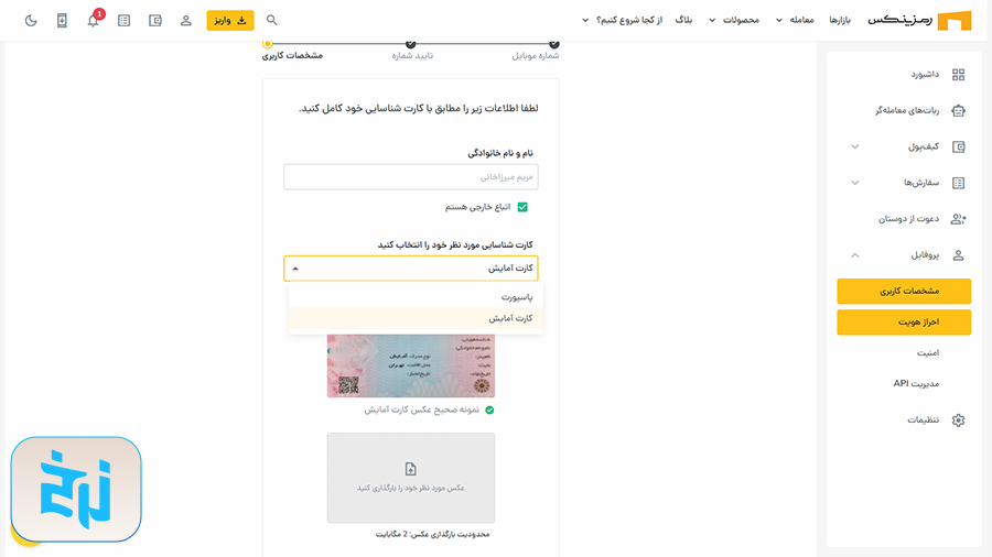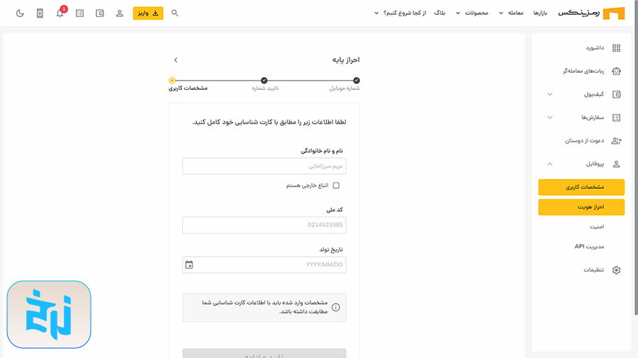 رمزینکس هویت را در دو سطح اصلی تأیید میکند که به سقف تراکنشهای کاربر مرتبط است.