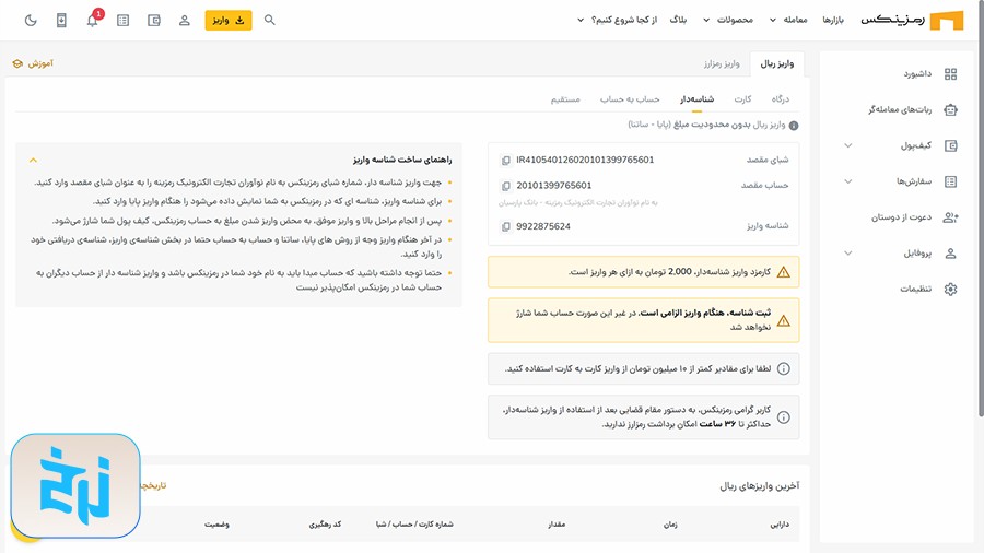 در این روش که معمولاً با بانکهای همکار رمزینکس انجام میشود، واریز با سرعت بالا انجام میگیرد؛ اما یک محدودیت امنیتی ۲۴ ساعته برای برداشت رمزارز اعمال میشود. این تأخیر کوتاهمدت بهمنظور افزایش امنیت تراکنش و جلوگیری از سوءاستفادههای احتمالی طراحی شده است.