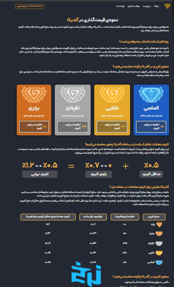 گلدیکا برای قدردانی از کاربران فعال، سطوح کاربری مختلفی تعریف کرده است: پایه، برنزی، نقرهای، طلایی و الماسی. ارتقای این سطوح براساس مجموع معاملات هفتگی انجام میشود. هرچه سطح کاربری بالاتر برود، تخفیف بیشتری روی بخش متغیر کارمزد اعمال میشود. کاربران سطح برنزی با خرید بیش از ۵۰ گرم، نقرهای با ۲۰۰ گرم، طلایی با ۵۰۰ گرم و الماسی با ۱۵۰۰ گرم میتوانند هزینه معامله را بهطور قابلتوجهی کاهش دهند. در بالاترین سطح، کارمزد نهایی حدود ۰٫۷۸ درصد است که نسبت به بازار سنتی رقم بسیار پایینی محسوب میشود.