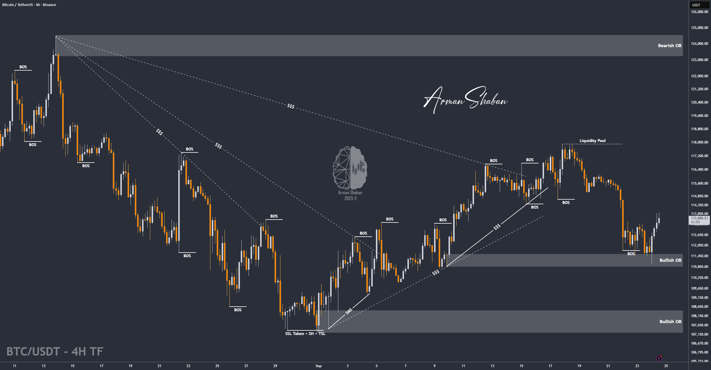 با تحلیل نمودار بیتکوین در تایمفریم ۴ ساعته، میبینیم که بعد از یک اصلاح سنگین تا ۱۱۱,۰۰۰ دلار، قیمت دوباره تقاضا پیدا کرده و الان حدود ۱۱۳,۶۰۰ دلار معامله میشه. پیشبینی میکنم بیتکوین به روند صعودی خودش ادامه بده تا شکاف نقدینگی رو پر کنه، با اولین هدف در ۱۱۴,۱۵۰ دلار. اهداف و سناریوهای دیگه رو فردا به اشتراک میذارم! لطفاً با لایکها و نظراتتون از من حمایت کنید تا انگیزه بگیرم تحلیلهای بیشتری با شما به اشتراک بذارم و نظرتون رو درباره روند احتمالی این نمودار با من به اشتراک بذارید!